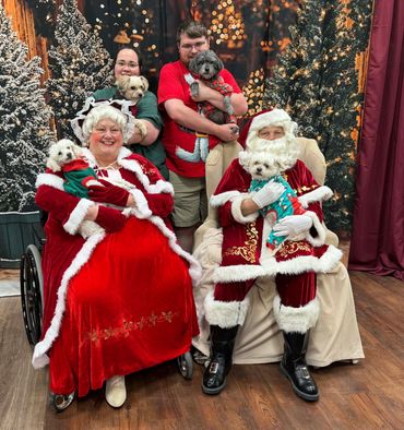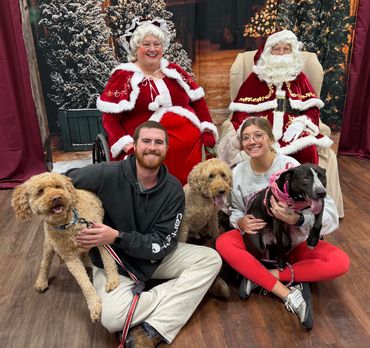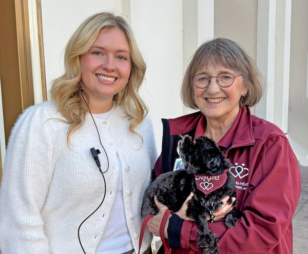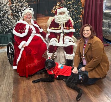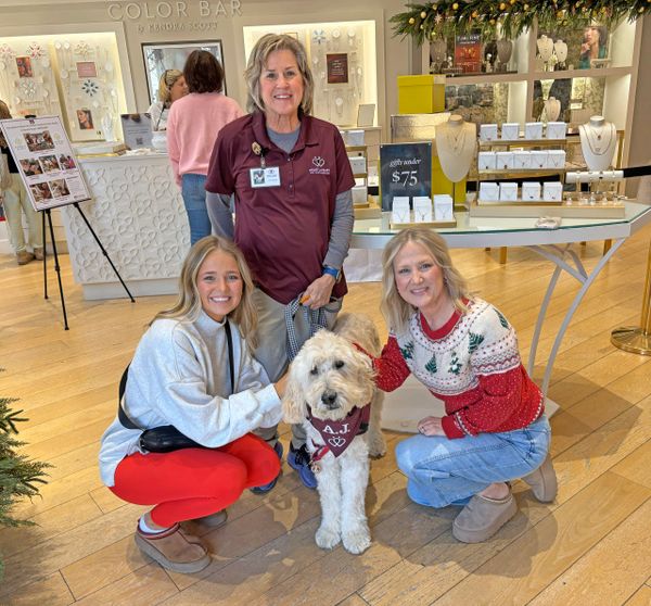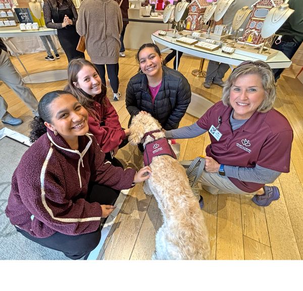 Left to right photo of Jennifer Key Heart to Heart Pet Partners Board President, Mimi Bynum and her partner Luka, Mayor Battle, Anne Peters and her partner Cookie.